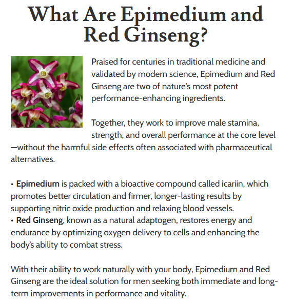 · Horny Goat Weed (Epimedium):Supports healthy blood flow to the genital area, enhancing sensitivity and pleasure.